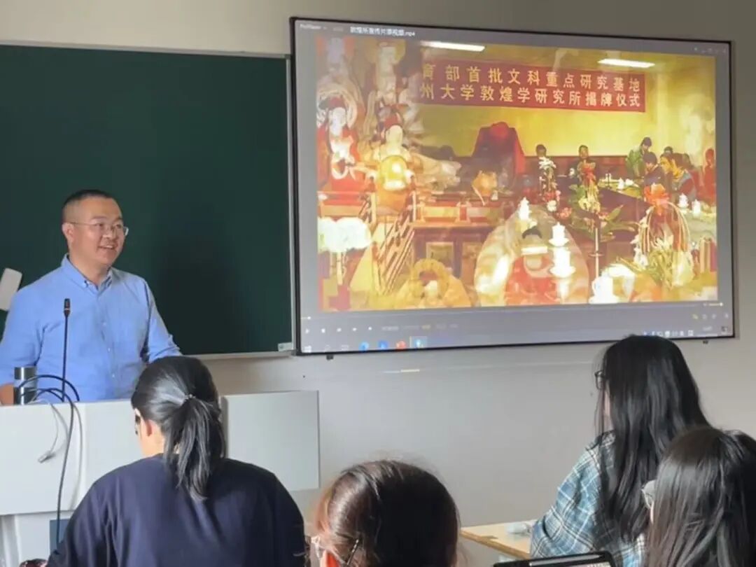 课程伊始,史志林老师先通过一段视频,介绍兰州大学敦煌学研究所的发展历程、学术积淀以及所取得的令人瞩目的成果,其后,史老师从“丝路视野看敦煌”“敦煌莫高窟概说”“敦煌石窟艺术”“敦煌藏经洞文书”等四方面展开讲解。